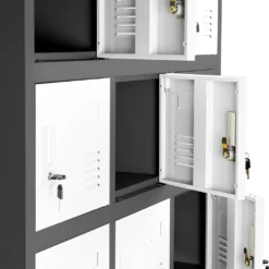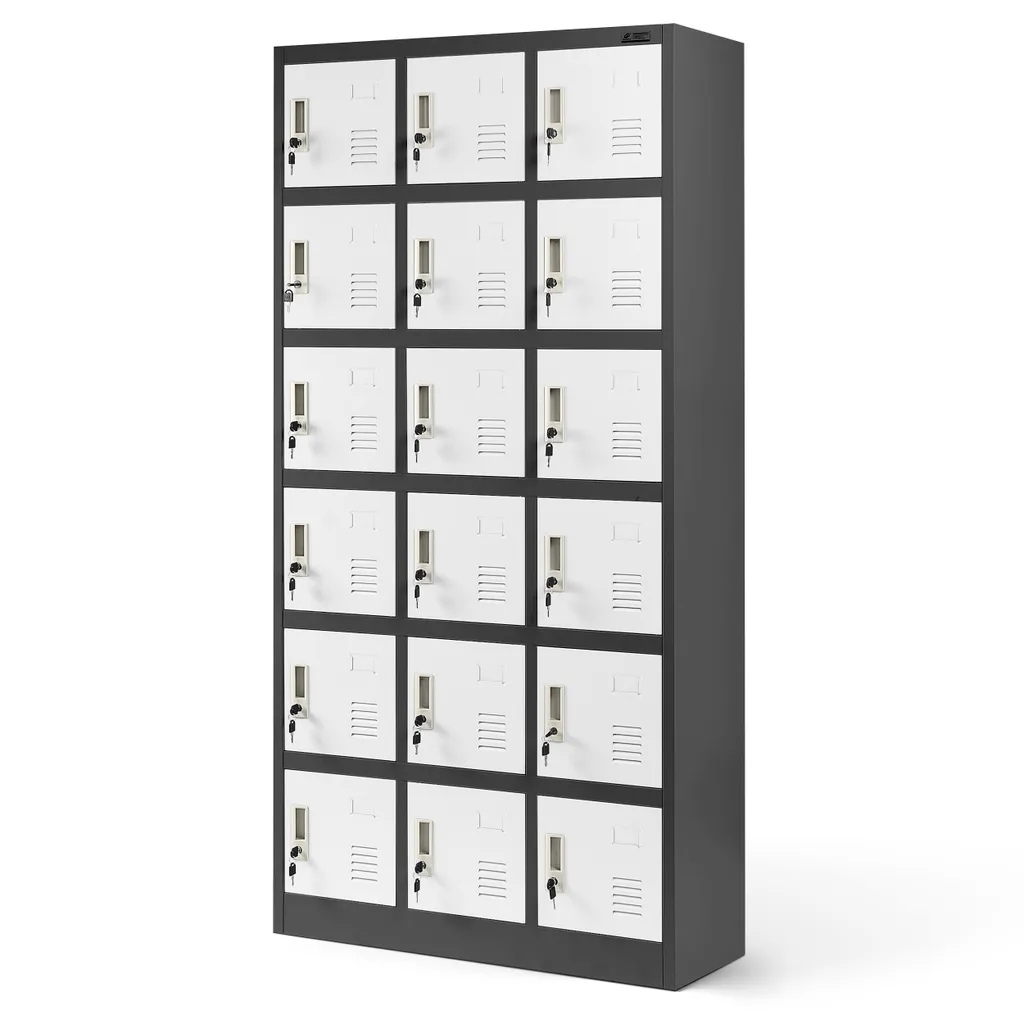 Umkleideschrank 3B6A Fächerschrank Schließfachschrank Wertfachschrank Metallspind Stahlblech Pulverbeschichtung 18 Fächer 185 Cm X 90 Cm X 40 Cm (H X B X T) (anthrazit/weiß)