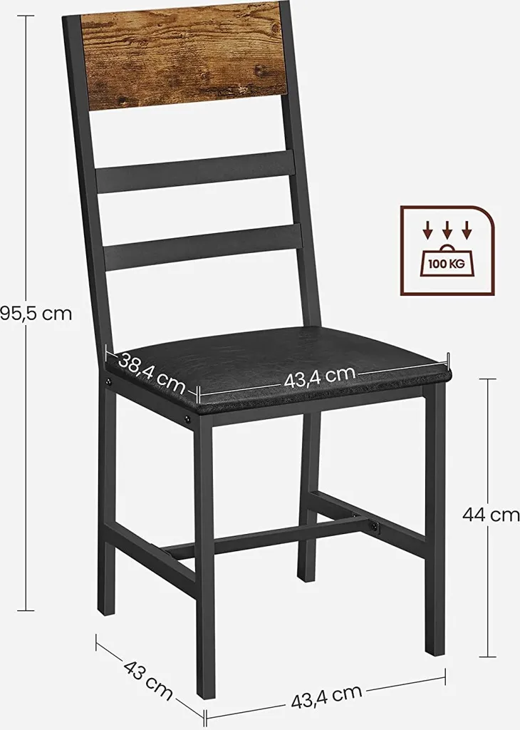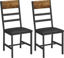 VASAGLE 2er Set Esszimmerstühle, Küchenstühle Mit Metallgestell, Esszimmerstuhl, Polsterstühle, Weich Gepolstert, Ergonomisch, Für Esszimmer Und Küche, Vintagebraun-schwarz LDC095B01