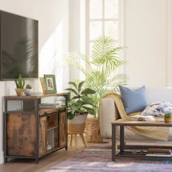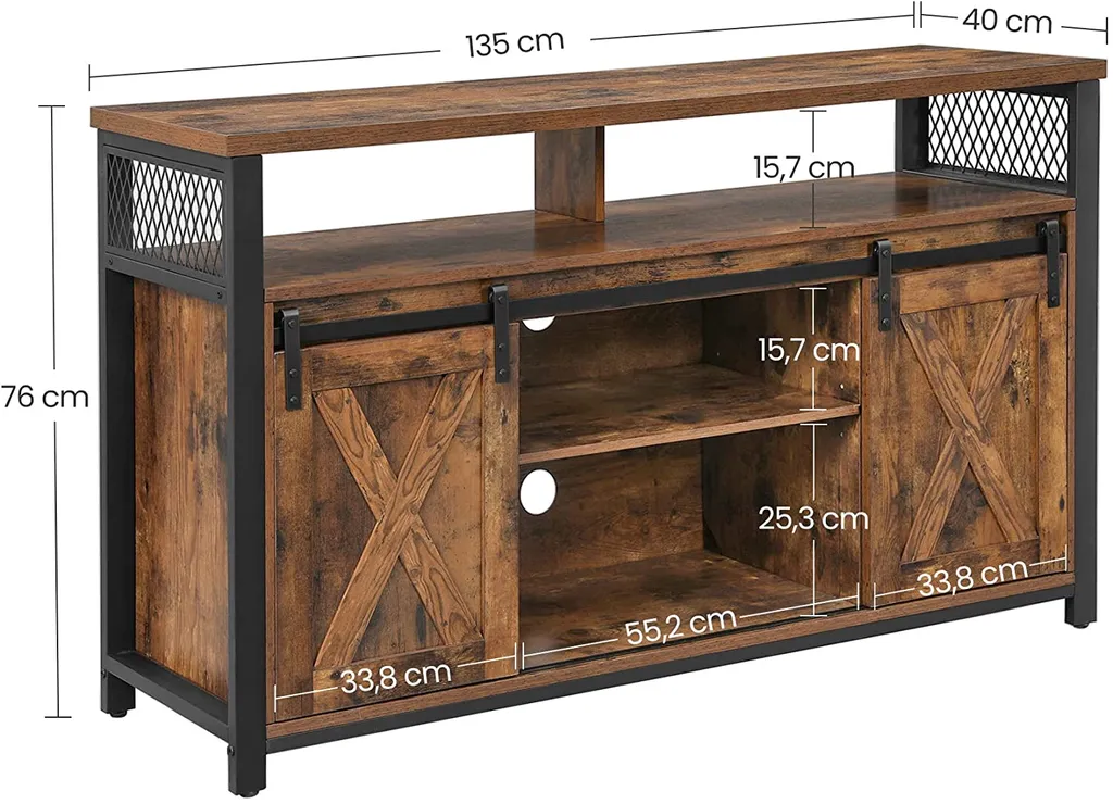 VASAGLE TV-Schrank, Fernsehtisch Mit 2 Schiebetüren, TV-Regal Für Fernseher Bis Zu 60 Zoll, Fernsehschrank Mit Verstellbaren Ablagen, Industrie-Design, Vintagebraun-schwarz LTV46BX