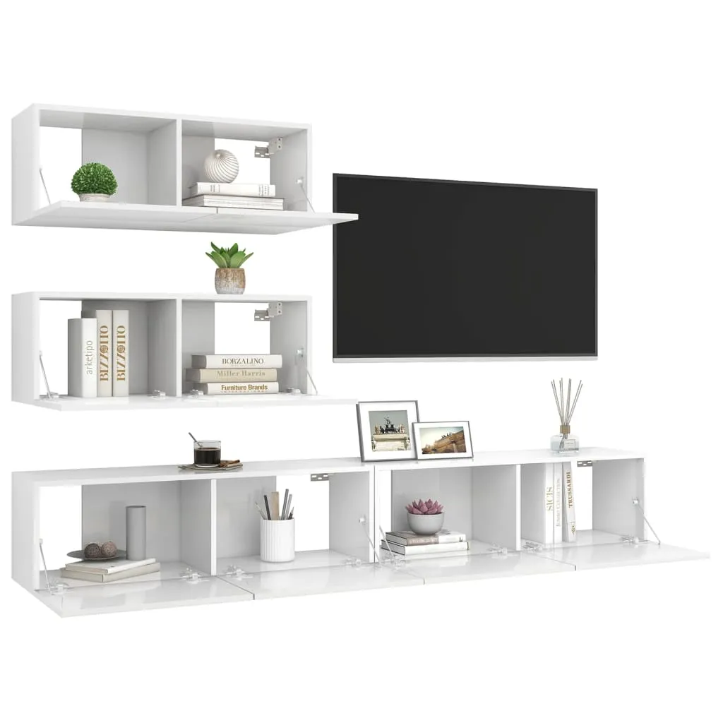 VidaXL 4-tlg. TV-Schrank-Set Hochglanz-Weiß Holzwerkstoff