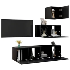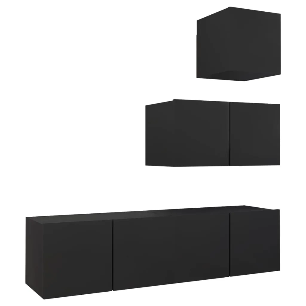 VidaXL 4-tlg. TV-Schrank-Set Schwarz Holzwerkstoff