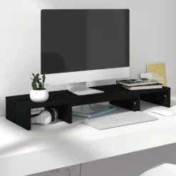 VidaXL Monitorständer Schwarz 80x24x10,5 Cm Massivholz Kiefer