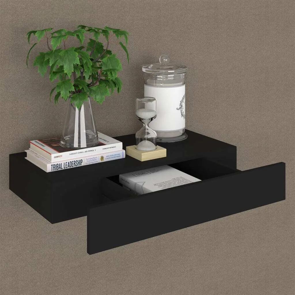 VidaXL Schweberegal Mit Schublade Schwarz 48 X 25 X 8 Cm
