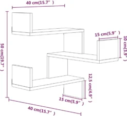 | Zusätzliche Varianten | vidaXL Wand-Eckregal Braun Eichen-Optik 40x40x50 cm Holzwerkstoff, vidaXL Wand-Eckregale 2 Stk. Braun Eiche 40x40x50 cm Holzwerkstoff, vidaXL Wand-Eckregale 2 Stk. Räuchereiche 40x40x50 cm Holzwerkstoff |