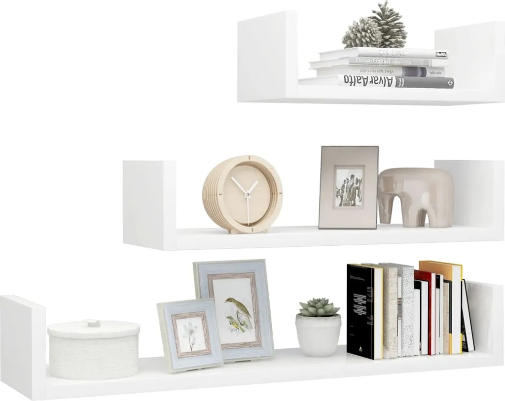 VidaXL Wandregal 3 Stk. Hochglanz-Weiß Holzwerkstoff