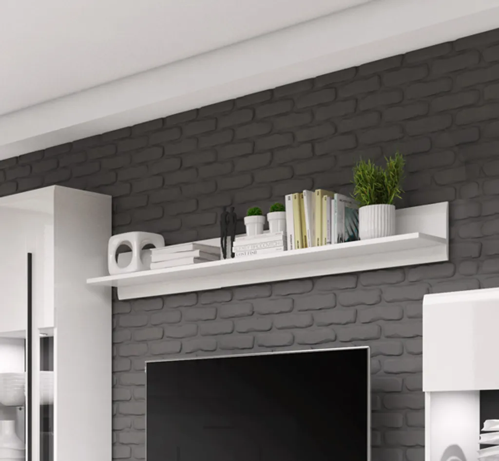 Wandregal Hängeregal Wandboard Regal Holzregal 180cm Weiß / Weiß Hochglanz