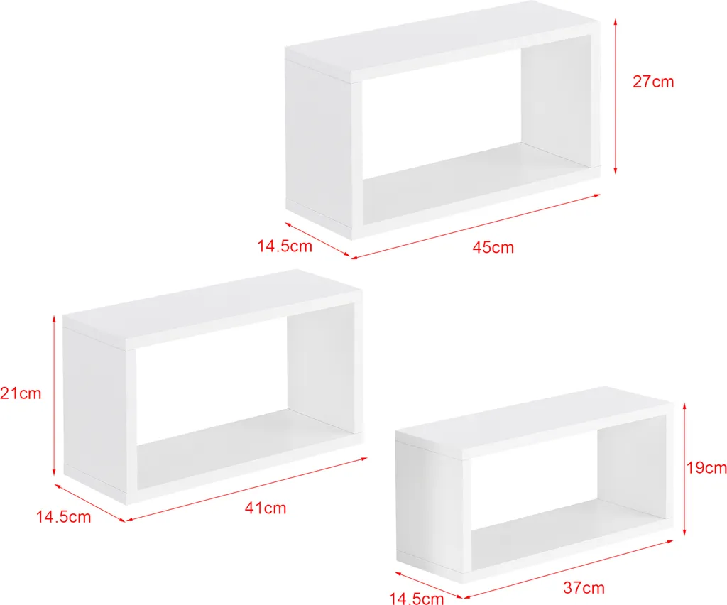 Wandregal Mandal 3er Set Regale In Verschiedenen Größen Spanplatte Weiß [en.casa]