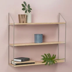 Wandregal Mit 3 Ablagen 60x15xH54cm Grau/Natur