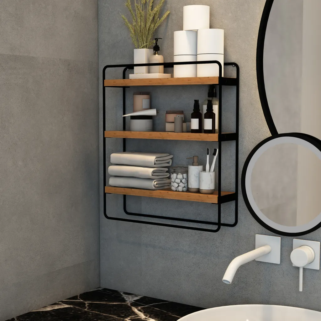 Wandregal ’Skovbo’ Mit 3 Ablageflächen Schwarz/Holzfarben