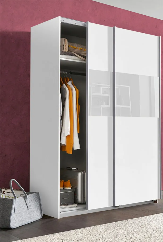 Wimex Schwebetürenschrank Kleiderschrank Schrank 135cm Bramfeld Weiß Weißglas
