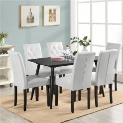 Yaheetech Esszimmerstühle 2er Set Küchenstuhl Polsterstuhl Mit Hoher Rückenlehne, Beine Aus Massivholz, Gepolsterte Sitzfläche Aus Kunstleder Weiß
