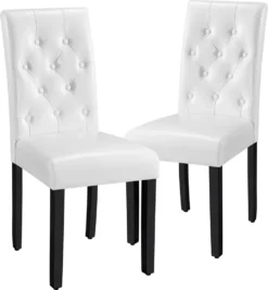Yaheetech Esszimmerstühle 2er Set Küchenstuhl Polsterstuhl Mit Hoher Rückenlehne, Beine Aus Massivholz, Gepolsterte Sitzfläche Aus Kunstleder Weiß