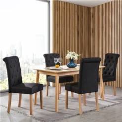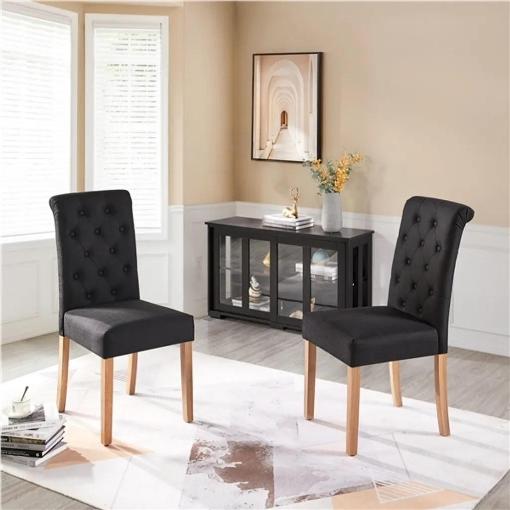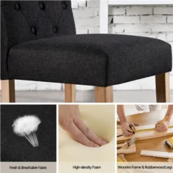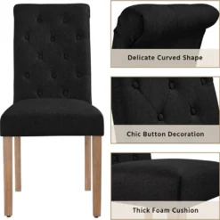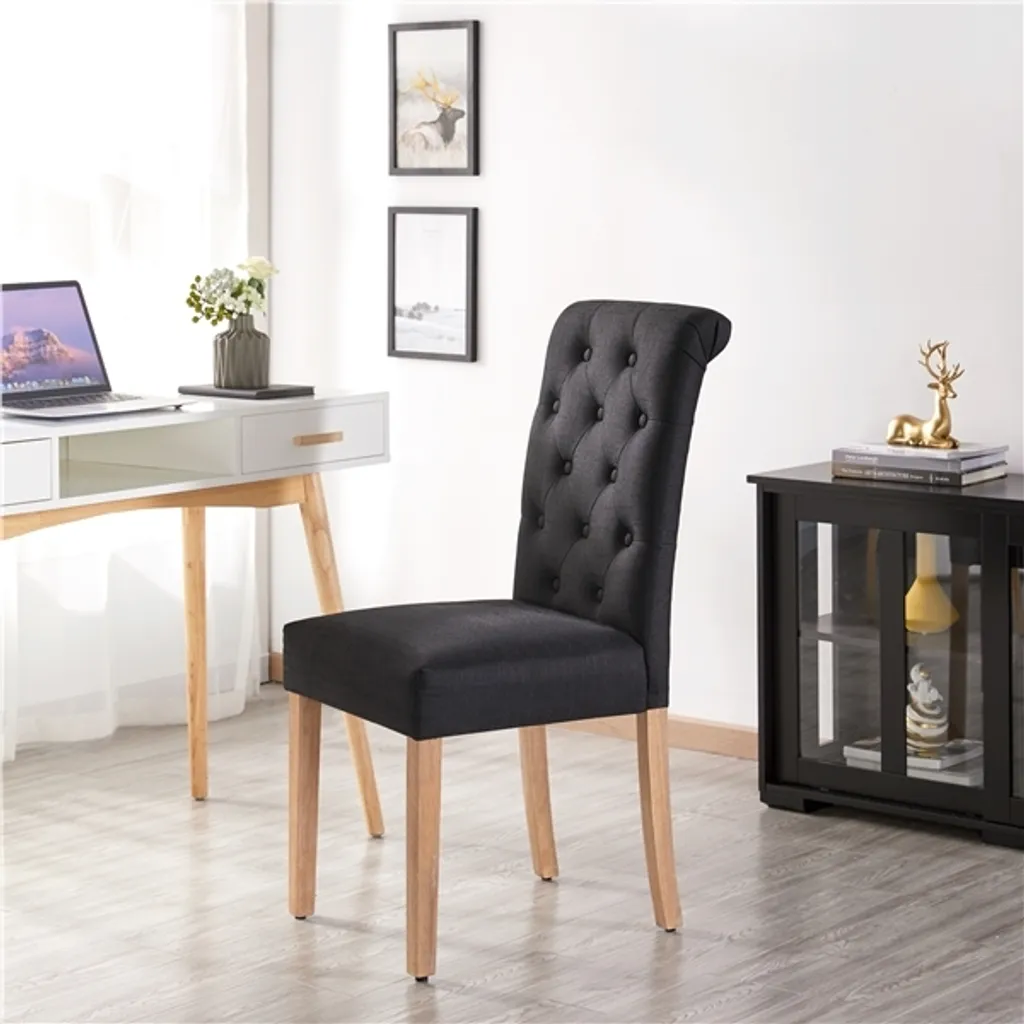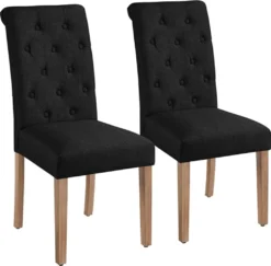 Yaheetech Esszimmerstühle 2er Set Küchenstuhl Polsterstuhl Mit Hoher Rückenlehne, Beine Aus Massivholz, Gepolsterte Sitzfläche Aus Leinen, Schwarz